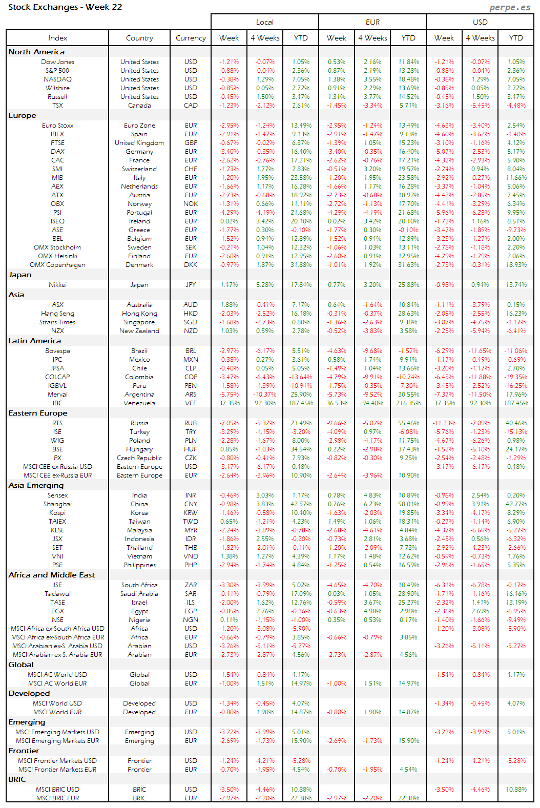 Bolsas Mundiales – Moneda Local, EUR, USD: Semana 22