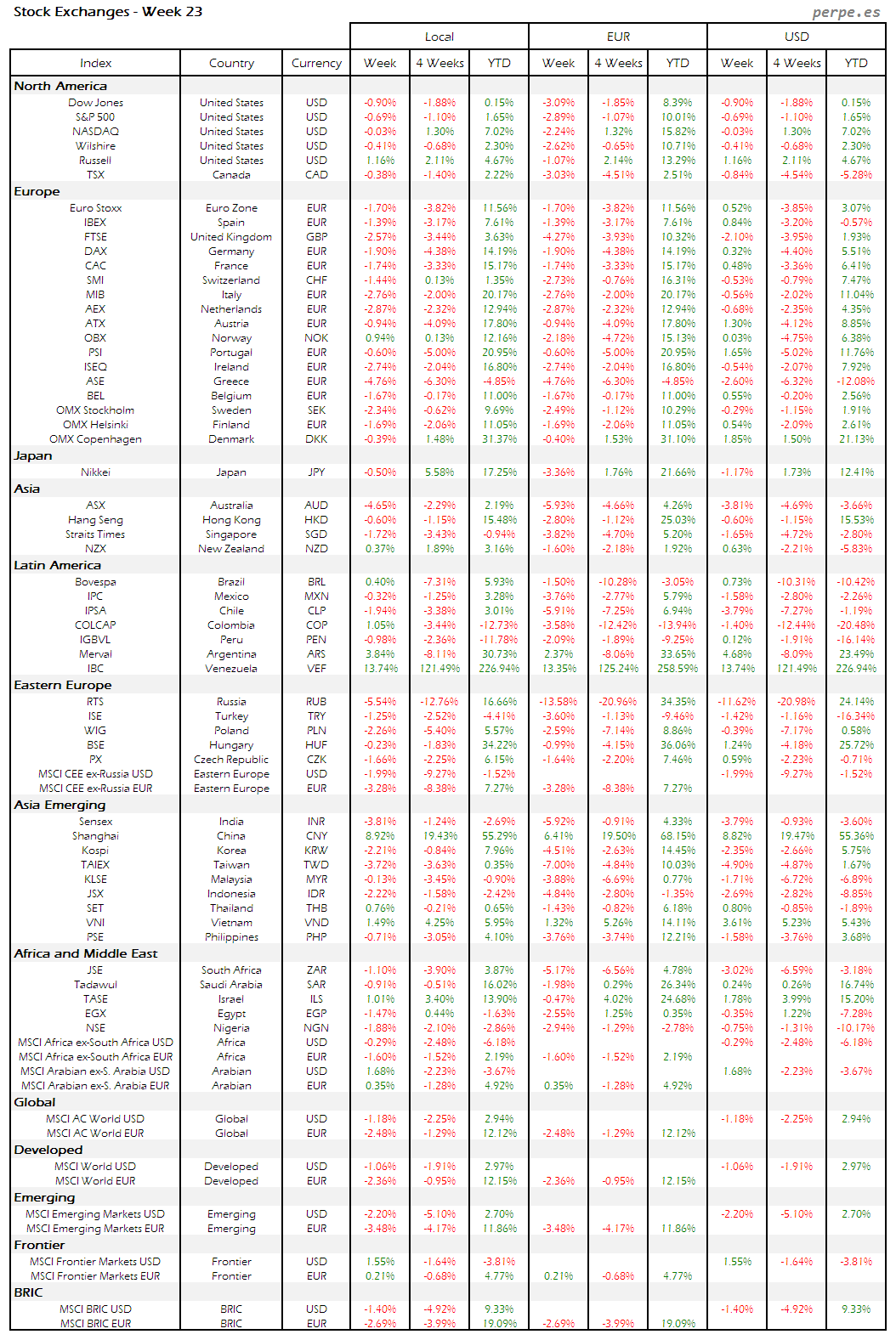 Bolsas Mundiales – Moneda Local, EUR, USD: Semana 23
