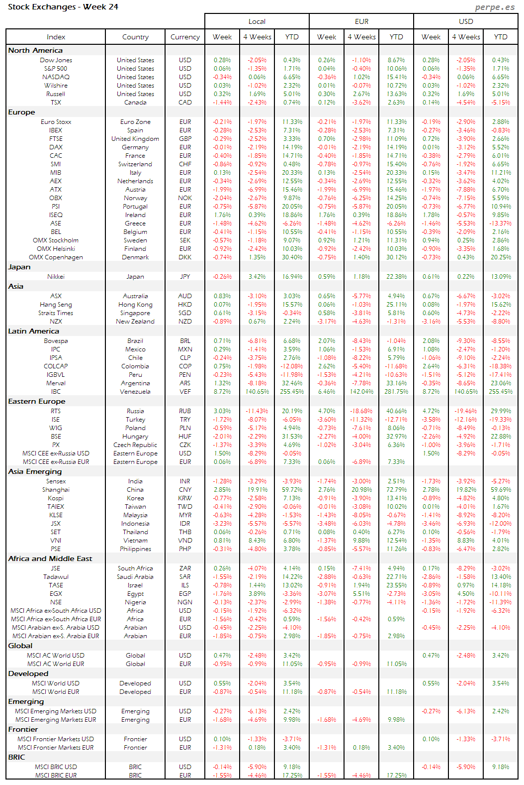 Bolsas Mundiales – Moneda Local, EUR, USD: Semana 24