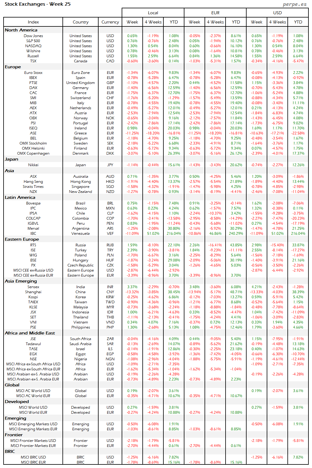 Bolsas Mundiales – Moneda Local, EUR, USD: Semana 25