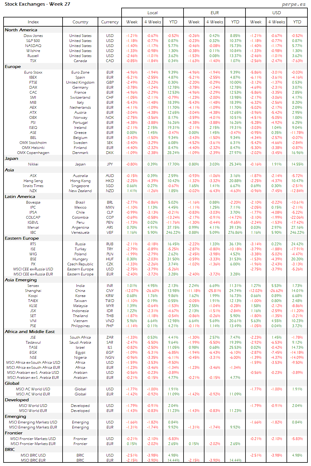 Bolsas Mundiales – Moneda Local, EUR, USD: Semana 27
