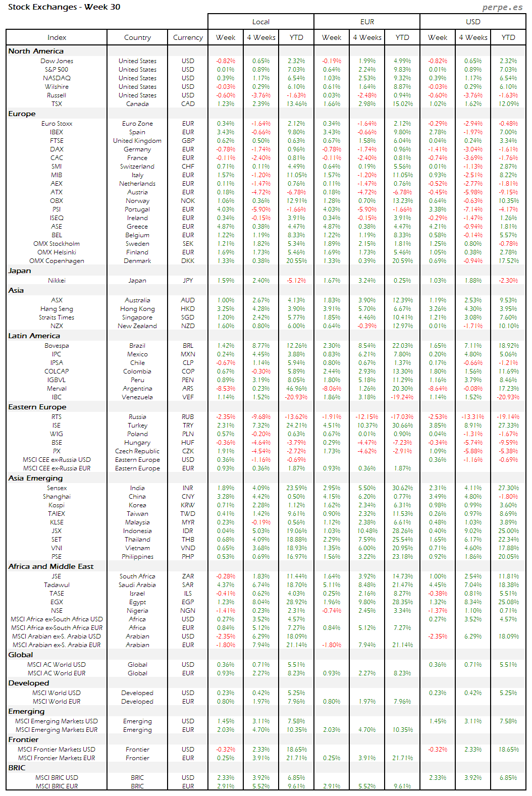 Bolsas Mundiales – Moneda Local, EUR, USD: Semana 30