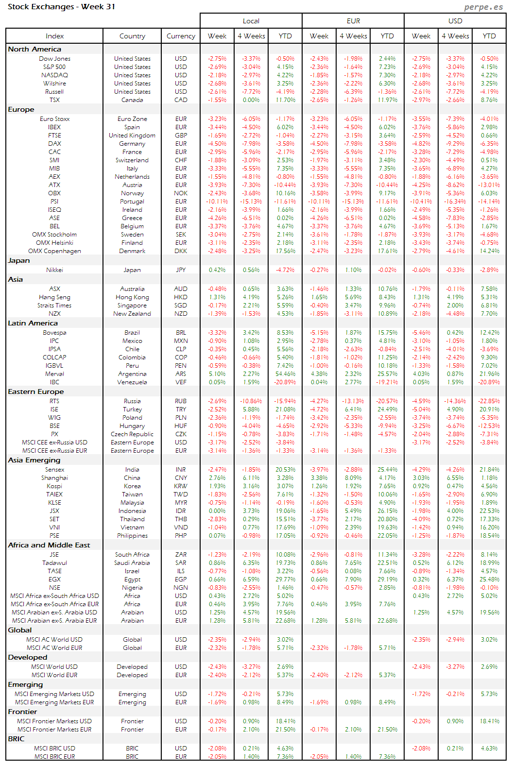 Bolsas Mundiales – Moneda Local, EUR, USD: Semana 31