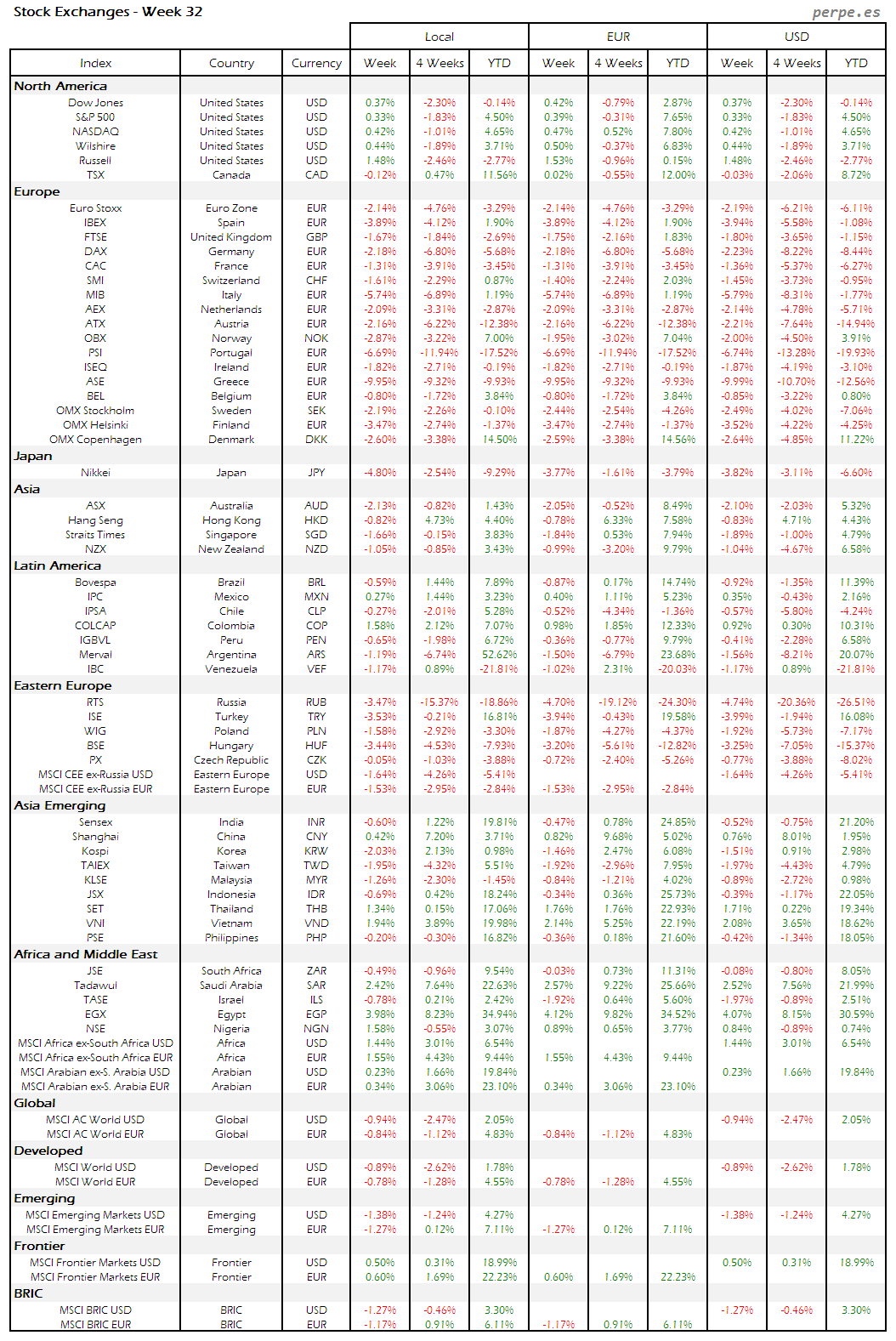 Bolsas Mundiales – Moneda Local, EUR, USD: Semana 32