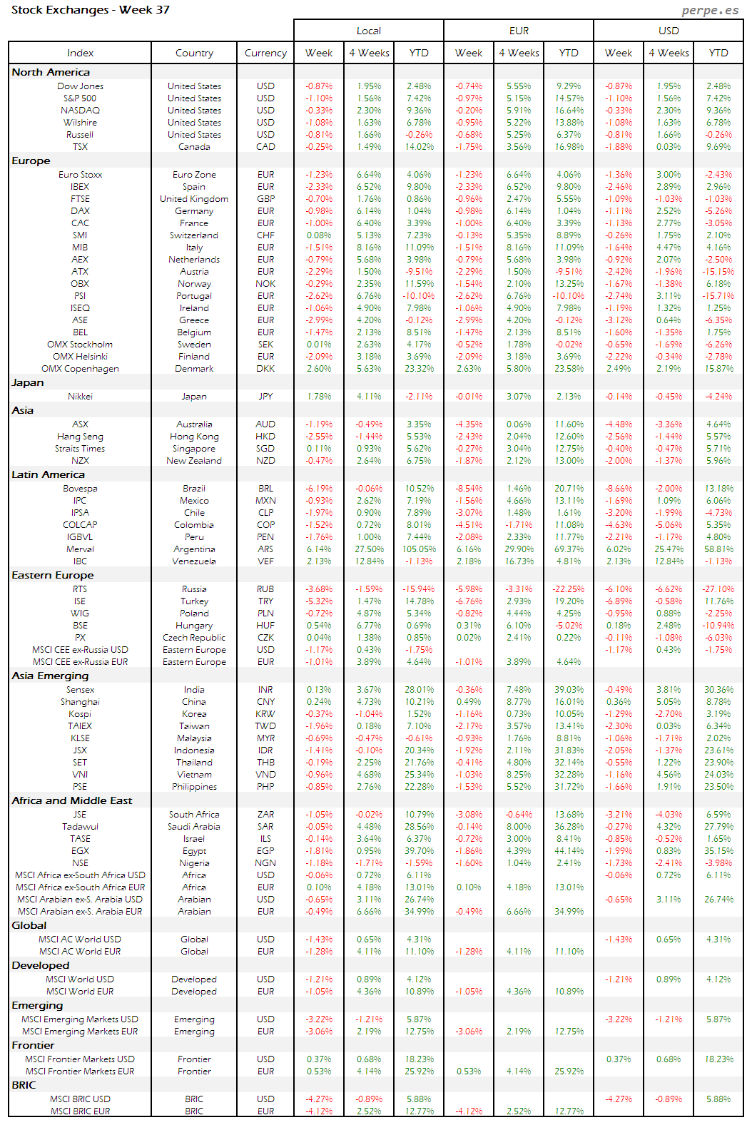 Bolsas Mundiales – Moneda Local, EUR, USD: Semana 37