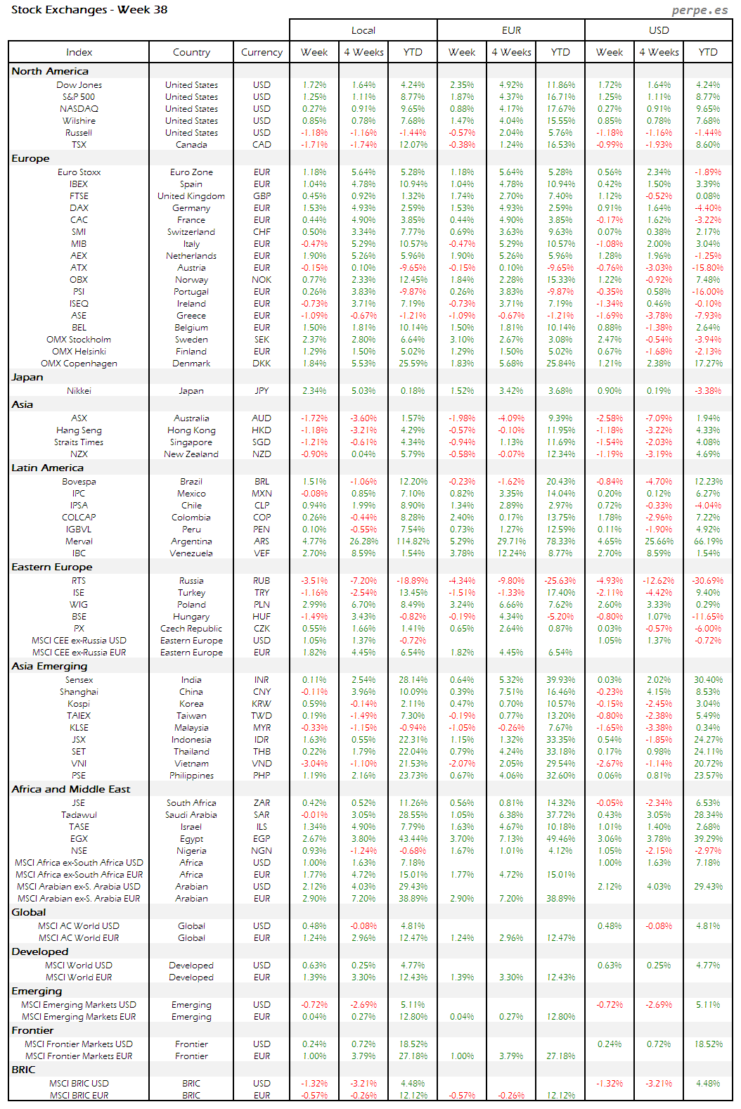 Bolsas Mundiales – Moneda Local, EUR, USD: Semana 38