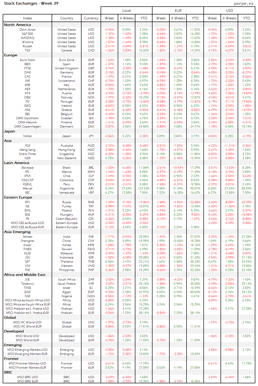 Bolsas Mundiales – Moneda Local, EUR, USD: Semana 39