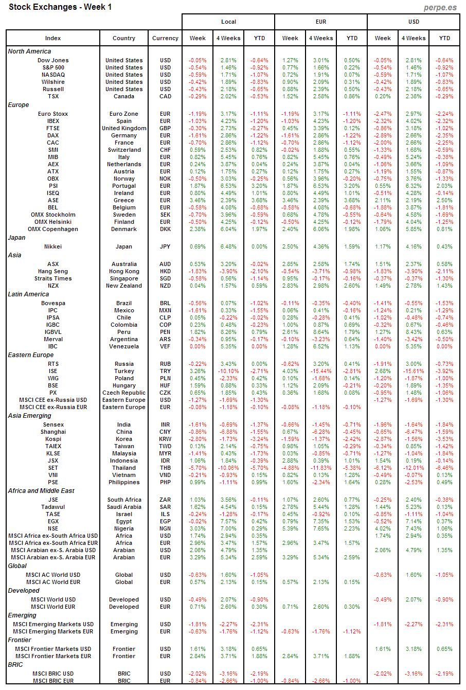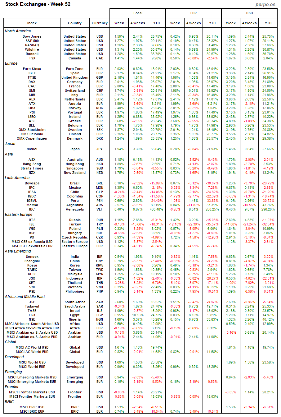 Bolsas Mundiales – Moneda Local, EUR, USD: Semana 52