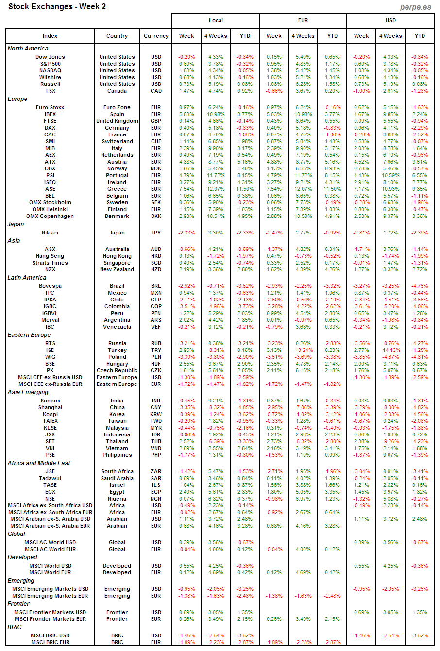 Bolsas Mundiales – Moneda Local, EUR, USD: Semana 2