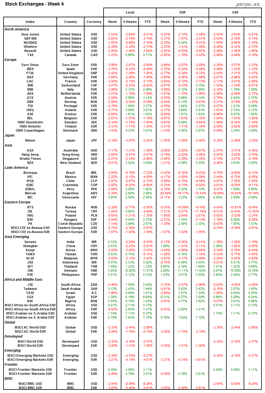Bolsas Mundiales – Moneda Local, EUR, USD: Semana 4