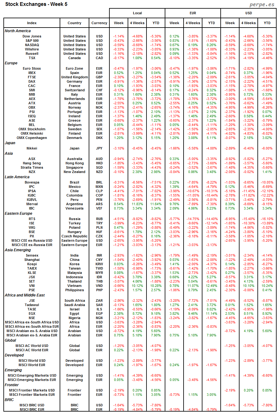 Bolsas Mundiales – Moneda Local, EUR, USD: Semana 5