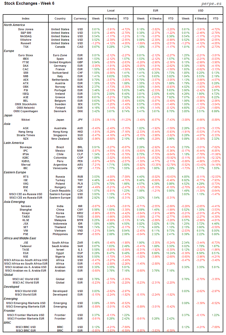 Bolsas Mundiales – Moneda Local, EUR, USD: Semana 6