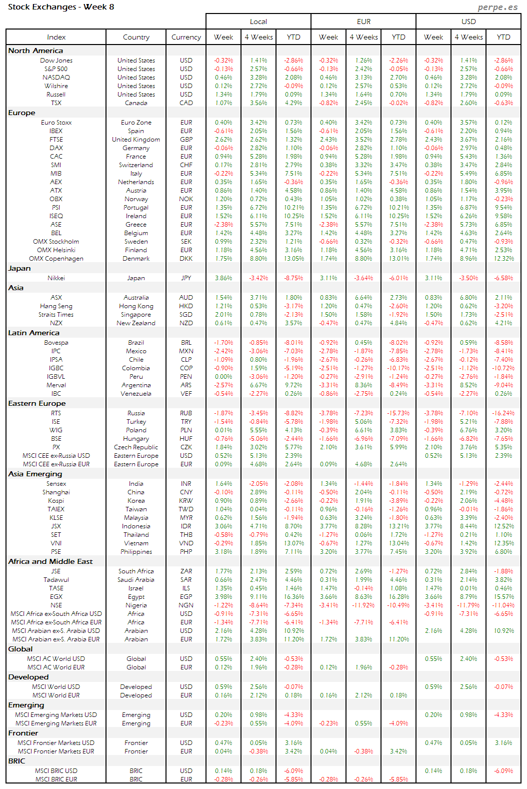 Bolsas Mundiales – Moneda Local, EUR, USD: Semana 8