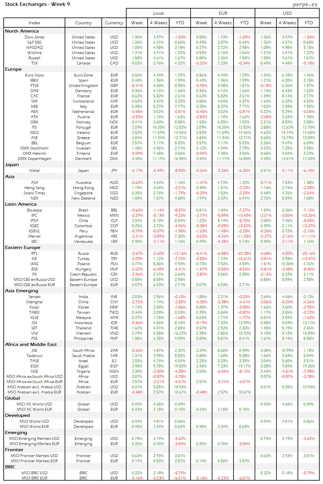 Bolsas Mundiales – Moneda Local, EUR, USD: Semana 9