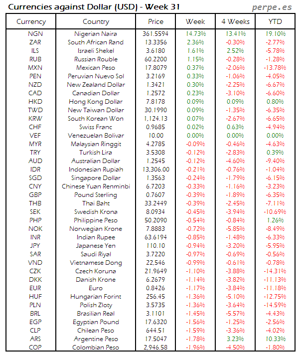 | Flujo de Fondos de Inversión y ETF’s (Millones de dólares) – Semana 31 | |||