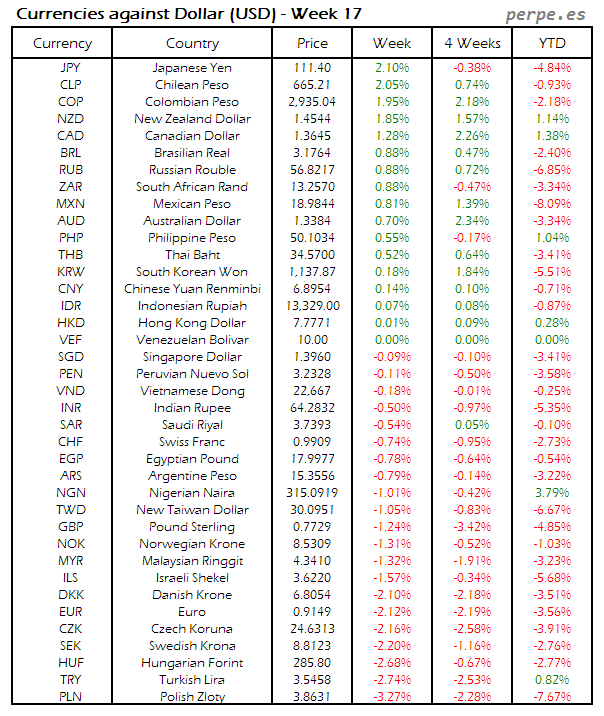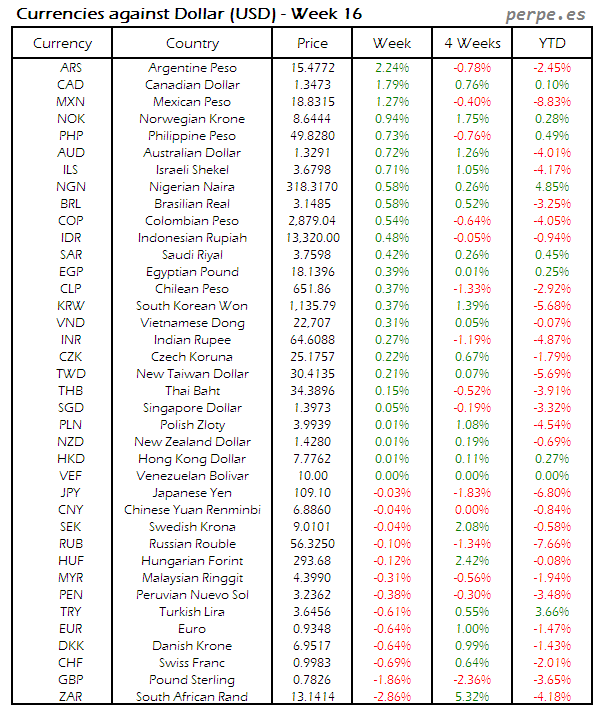 Bolsas Mundiales – Moneda Local, EUR, USD: Semana 16