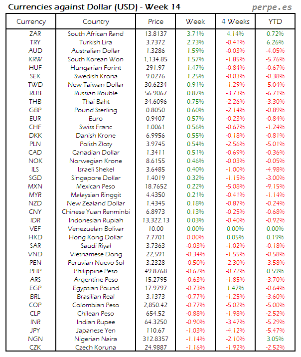 Divisas frente USD: Semana 14
