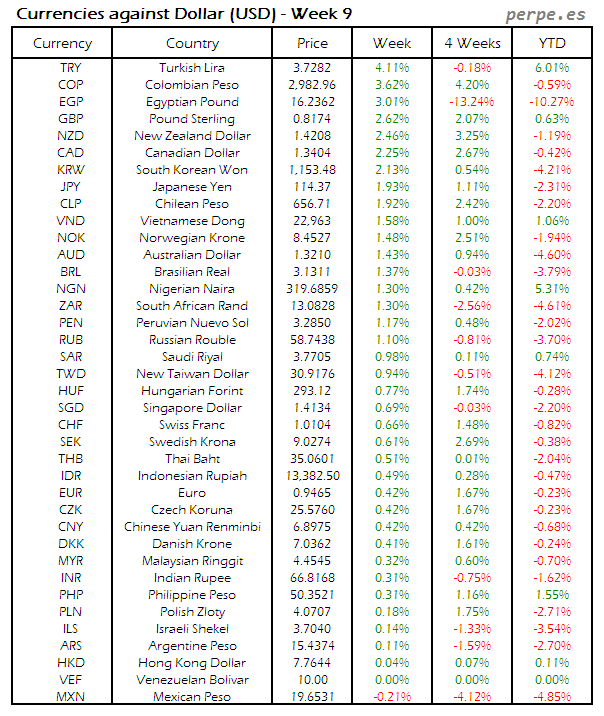 Divisas frente USD: Semana 9