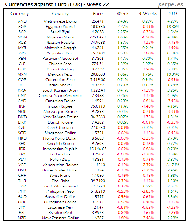 Divisas frente USD: Semana 22