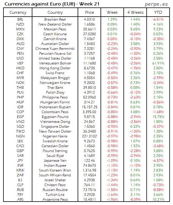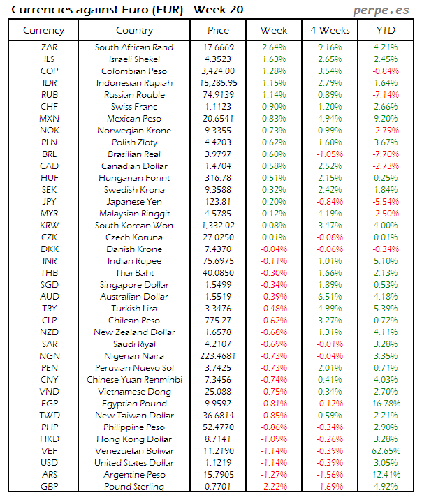 Bolsas Mundiales – Moneda Local, EUR, USD: Semana 20