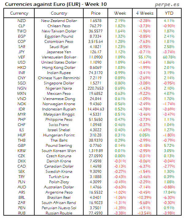 Bolsas Mundiales – Moneda Local, EUR, USD: Semana 10
