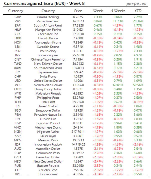 Divisas frente EUR: Semana 8