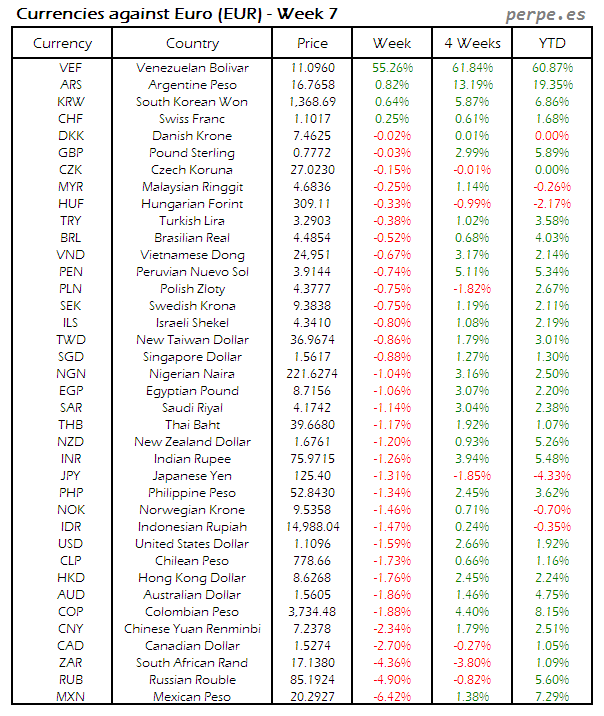 Divisas frente EUR: Semana 7