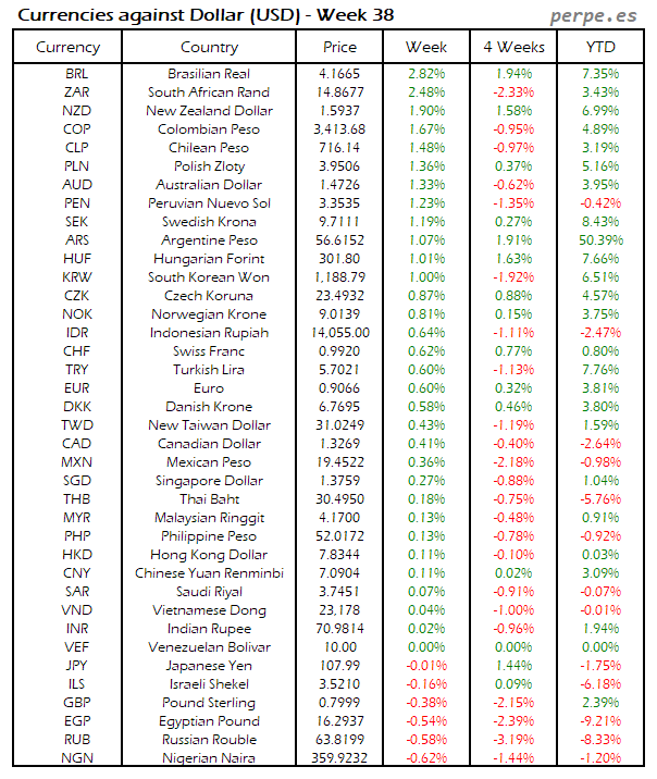 Divisas frente USD: Semana 40