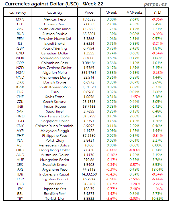 Bolsas Mundiales – Moneda Local, EUR, USD: Semana 22