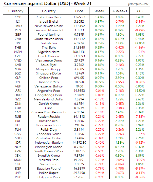 Divisas frente USD: Semana 21