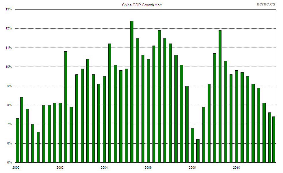 Crecimiento del PIB en China desde 2000 / GDP growth in China since 2000 Posted 18 October, 2012 by perpe
