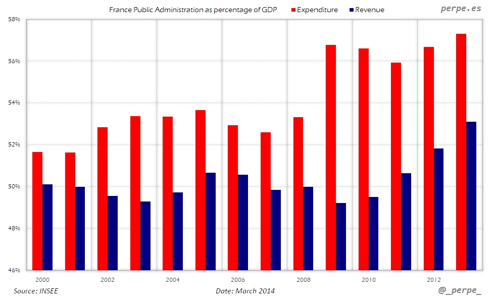 Gasto e ingreso público en Francia desde 2000 / Public expenditure and revenue in France since 2000 Posted 13 March, 2014 by perpe