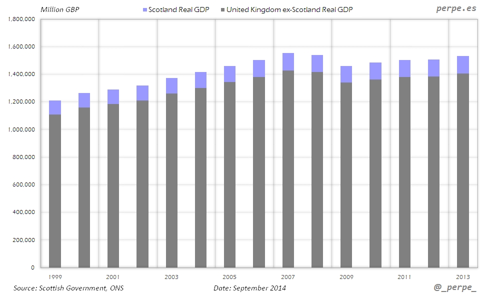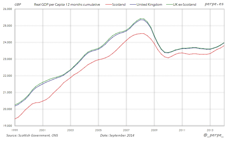 PIB en Escocia y Reino Unido desde 1999 / GDP in Scotland and United Kingdom since 1999 Posted 19 September, 2014 by perpe