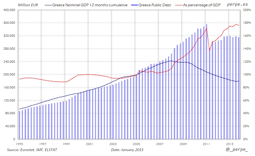 PIB y deuda pública en Grecia desde 1995 / GDP and public debt in Greece since 1995 Posted 28 January, 2015 by perpe