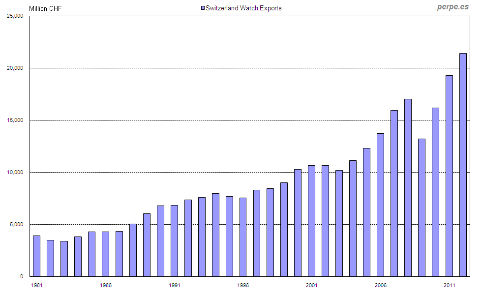 Exportaciones de relojes en Suiza desde 1981 / Watch exports in Switzerland since 1981 Posted 8 August, 2013 by perpe