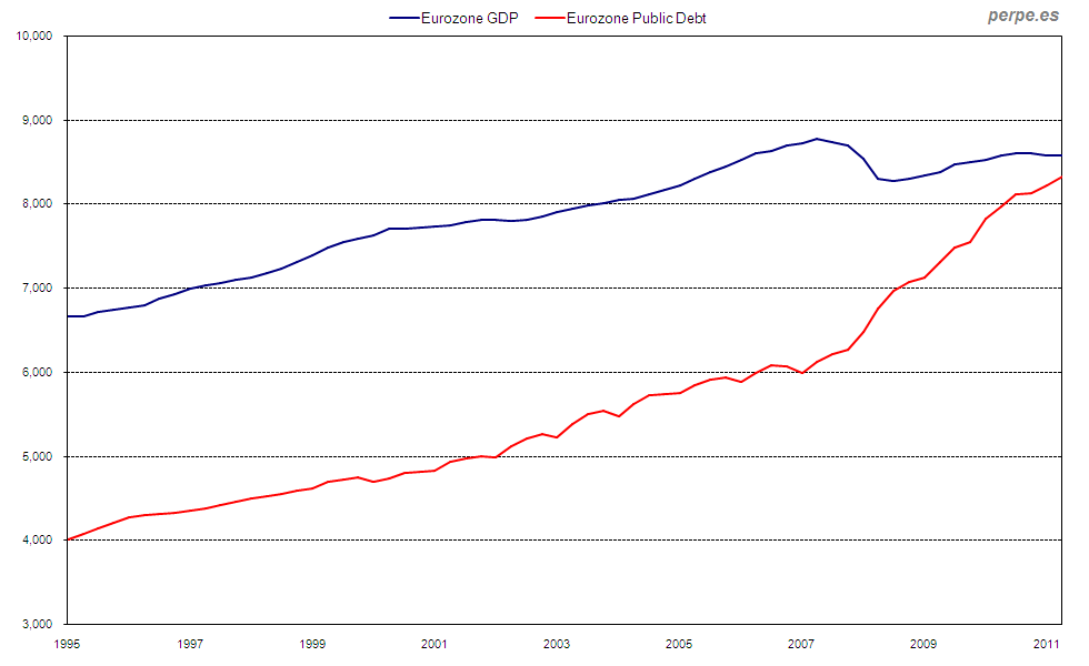 PIB y deuda pública en la Zona Euro desde 1995 / GDP and public debt in Euro Zone since 1995 Posted 23 September, 2012 by perpe