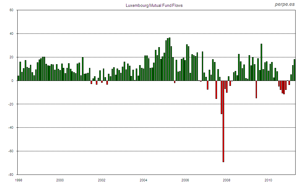 Flujo de fondos de inversión en Luxemburgo desde 1998 / Mutual funds flows in Luxembourg since 1998 Posted 10 May, 2012 by perpe