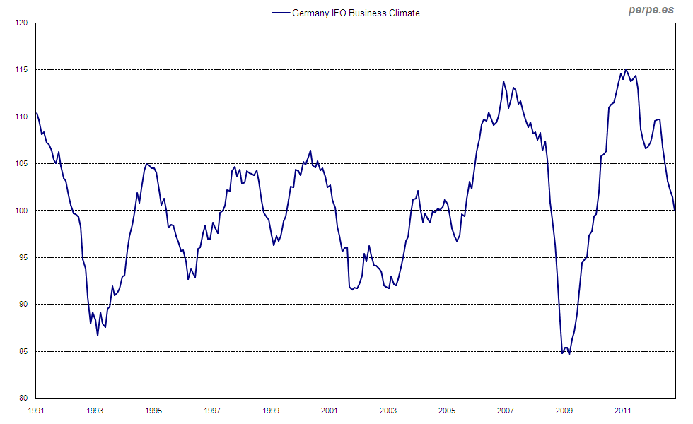 Indicador IFO de clima de negocios en Alemania desde 1991 / IFO Business Climate Index in Germany since 1991 Posted 24 October, 2012 by perpe