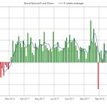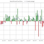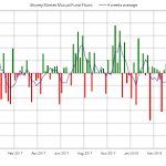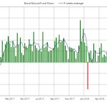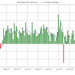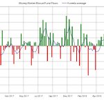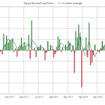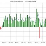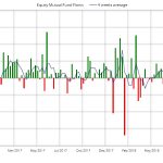 De nuevo se producen salidas esta semana en fondos y ETF’s de renta fija. La media de 4 semanas se sitúa en terreno negativo por primera vez desde Enero del año pasado. En el acumulado anual las entradas se reducen hasta 192.000 millones de dólares mientras el año pasado en las mismas fechas eran unos 325.000 millones.