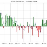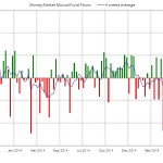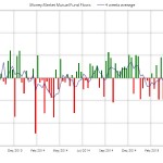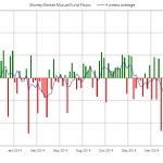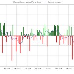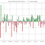 Cuarta semana de suscripciones en fondos de dinero acumulando unos 46.000 millones de dólares. Este año las salidas son de unos 13.000 millones, muy por debajo de los 100.000 millones que los inversores habían reembolsado en 2014.