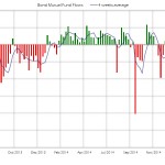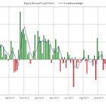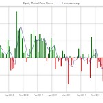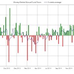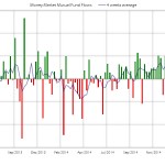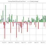 De nuevo se producen suscripciones en fondos de renta fija acumulando 7 semanas por un importe cercano a los 16.000 millones de dólares. La media de 4 semanas ha permanecido en positivo durante las últimas 20 semanas. En el acumulado anual las entradas alcanzan los 50.000 millones, por encima de los 39.000 millones del año pasado en el mismo periodo.