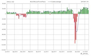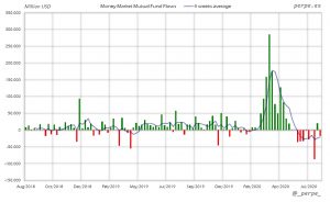 Importantes reembolsos en fondos de dinero durante 6 semanas consecutivas, reduciendo el saldo positivo acumulado este año hasta 812.000 millones de dólares, por encima de los 363.000 millones que los inversores habían suscrito en 2019.