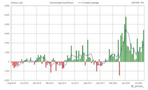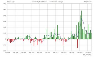 Moderadas salidas en ETF’s de materias primas, de manera que en el acumulado anual las entradas se mantienen estables en 48.000 millones de dólares, mucho mayores que los 7.000 millones del año pasado.