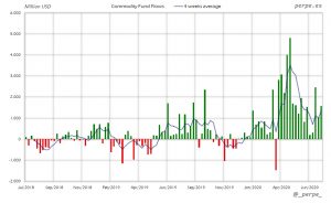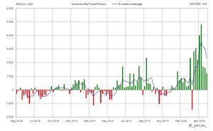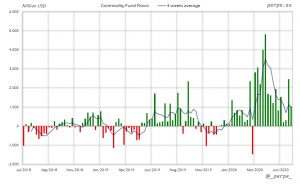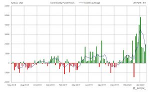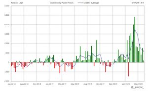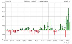 Suscripciones una semana más en ETF’s de materias primas superando los 31.000 millones de dólares en 16 semanas. En lo que va de año las entradas son de 37.000 millones, muy por encima de los casi 1.000 millones del año pasado.