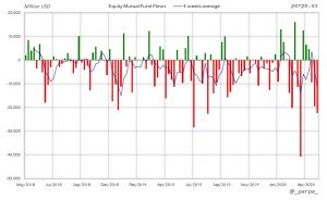 Continúan las salidas en fondos y ETF’s por cuarta semana consecutiva, si bien en fondos extranjeros acumulan ya 20 semanas por casi 92.000 millones de dólares. En lo que va de año los reembolsos son de 183.000 millones, algo más del doble que los 87.000 millones que los inversores reembolsado el año pasado.