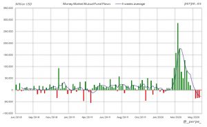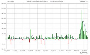 Muy ligeras suscripciones en fondos de dinero esta semana, de manera que el saldo positivo este año se mantiene en los 1.051.000 millones de dólares, mientras en el mismo periodo del año pasado era de 213.000 millones.