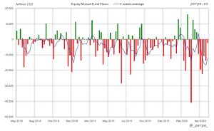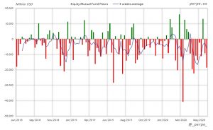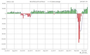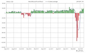 De nuevo se las entradas en fondos y ETF’s de renta fija por más de 229.000 millones de dólares en 13 semanas. En el acumulado anual las suscripciones son de 54.000 millones, por debajo de los 219.000 millones del año anterior en las mismas fechas.