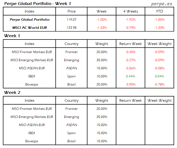 Comienza el año el Perpe Global Portfolio con una caída del 1%, inferior al 1.3% que bajó el MSCI AC World EUR.