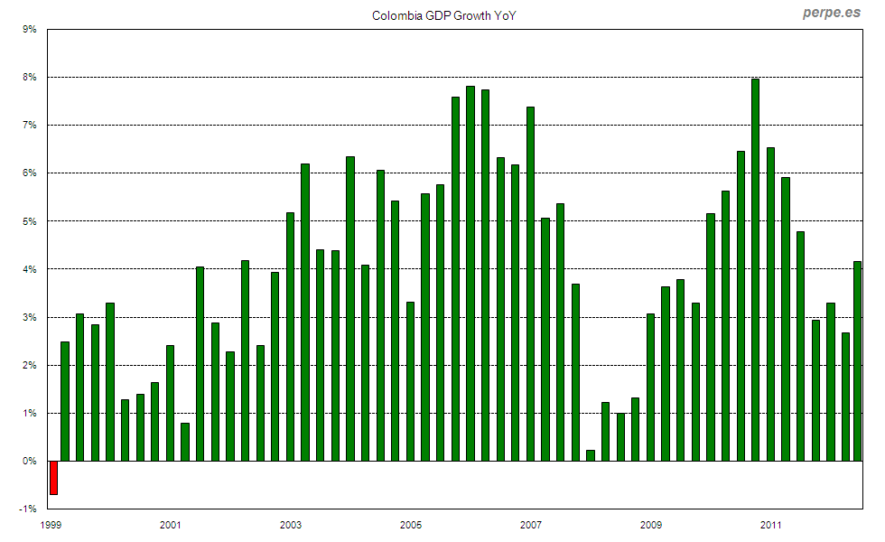 Crecimiento del PIB en Colombia desde 1999 / GDP growth in Colombia since 1999 Posted 21 November, 2013 by perpe