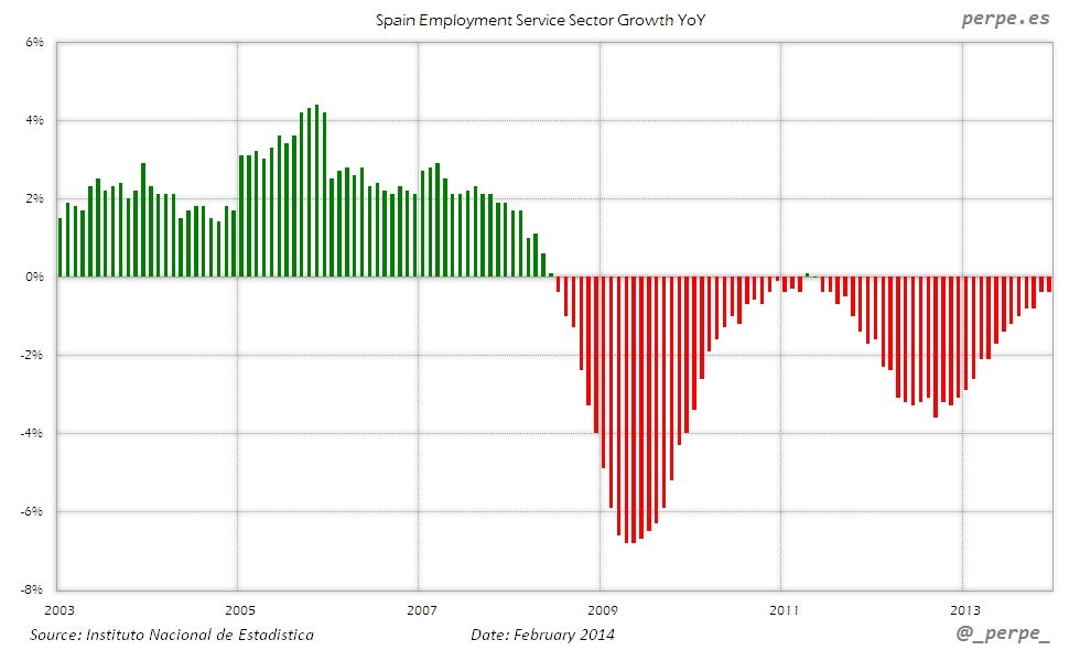 Empleo en el sector servicios en España desde 2003 / Employment in service sector in Spain since 2003 Posted 17 February, 2014 by perpe